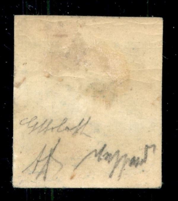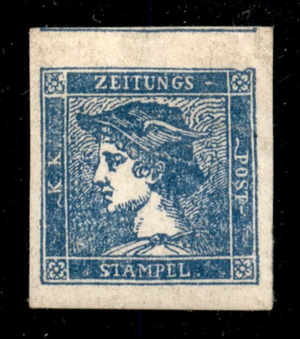 1855 - Mercurio - 3 cent azzurro (3) terzo tipo - gomma originale con linguella - ben marginato con parte di esemplare superiore - cert. Caffaz