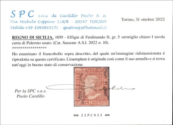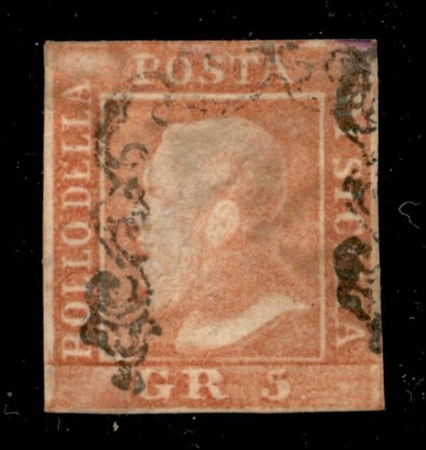 1859 - 5 grana vermiglio chiaro (10) I Tavola - usato - cert. Cardillo