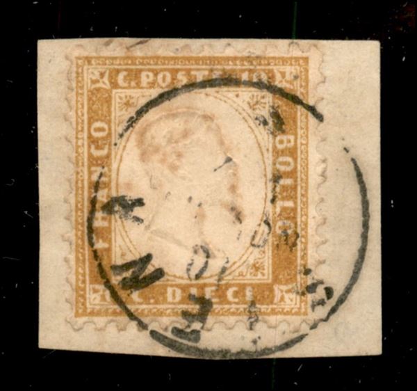 1862 - 10 cent ocra bistro (1f) usato su frammento - Siena 10.11."62" - qualche ingiallimento - Diena