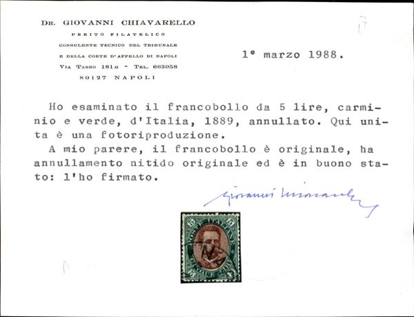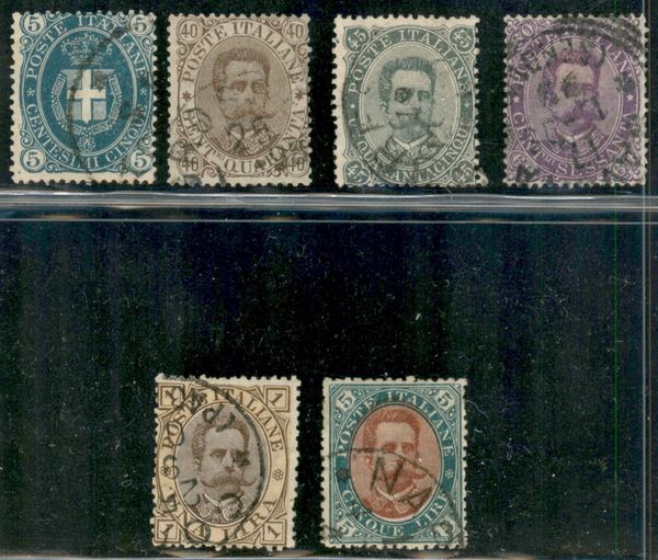 1889 - Umberto I e Stemma (44/49) - serie completa usata - cert. Chiavarello
