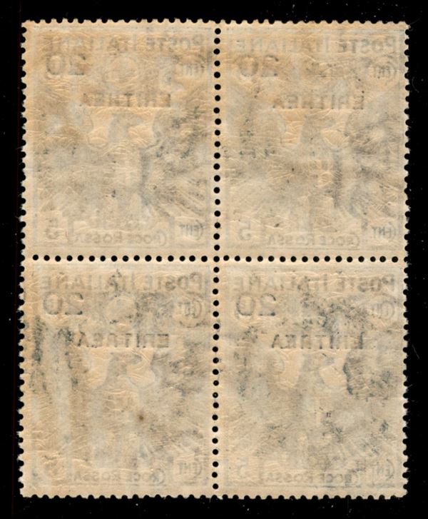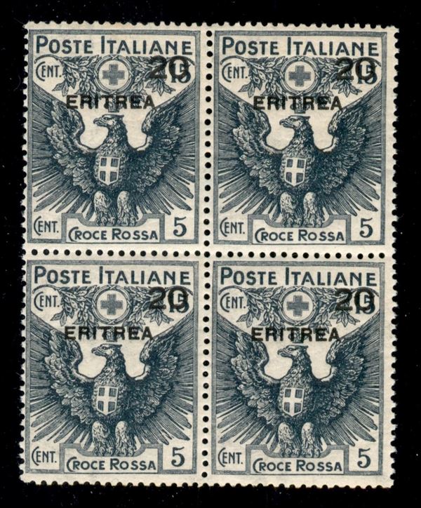 1916 - Croce Rossa 20 su 15 (43) in quartina - gomma integra - cert. AG
