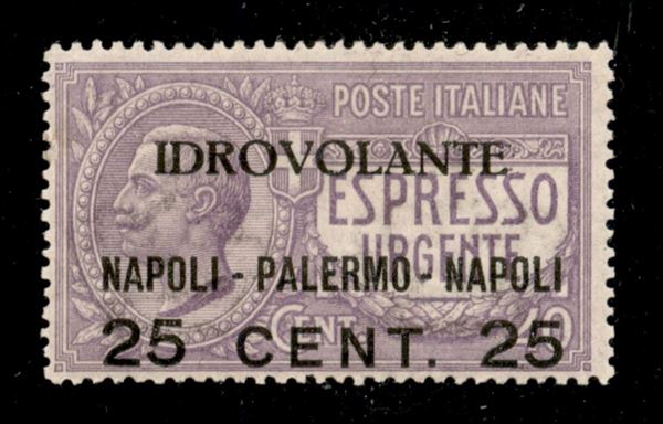 1917 - 25 cent Napoli Palermo (2ab - Aerea) con soprastampa in basso - gomma originale