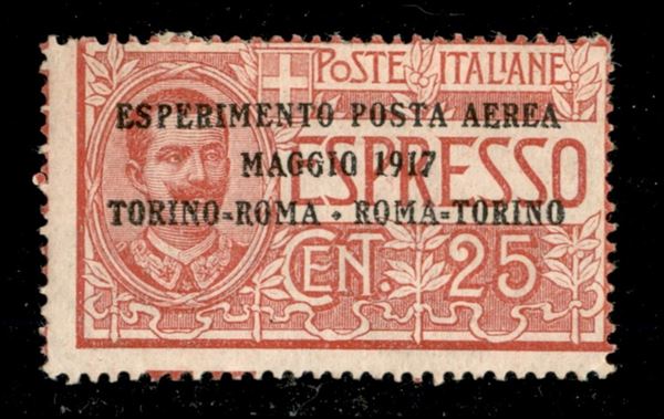 1917 - 25 cent Torino Roma (1 - Aerea) con dentellature spostate nei due sensi e parti di diciture marginali a sinistra e in basso (posiz. 46) - gomma originale - non catalogato