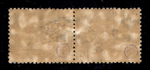 1918 - 10 cent (2cb) - coppia orizzontale usata con soprastampe oblique (a cavallo) - cert. AG