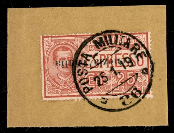 1919 - 25 cent (1a) con soprastampa capovolta - usato su frammento