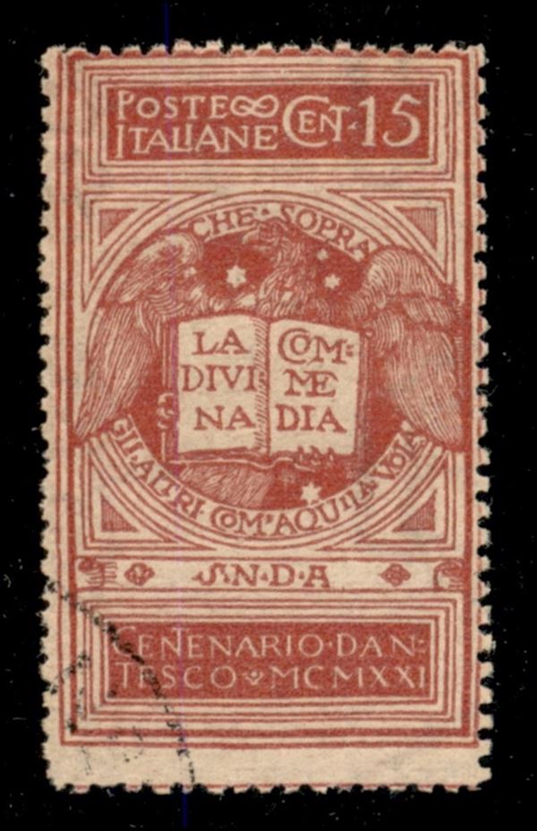 1921 - 15 cent Dante rosa brunastro (116B) usato - cert. AG