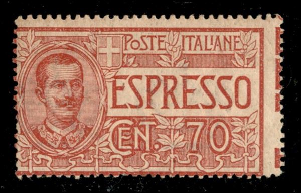 1925 - 70 cent (11 - Espressi) con dentellatura verticale spostata e parti di diciture marginali a destra - gomma originale - non catalogato