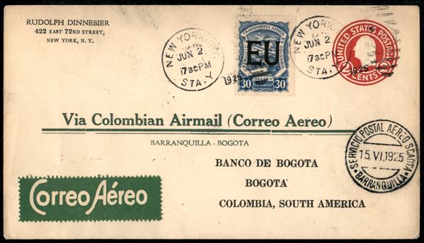 1925 (2/15 giugno) - Servizio Postal Aereo Scadta Barranquilla - aerogramma da New York a Bogotà con affrancatura mista