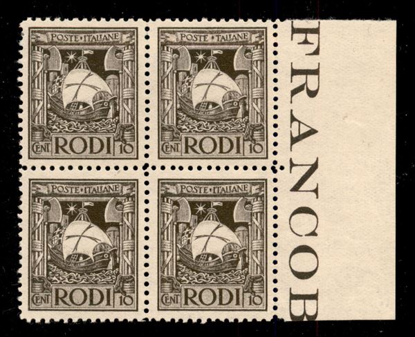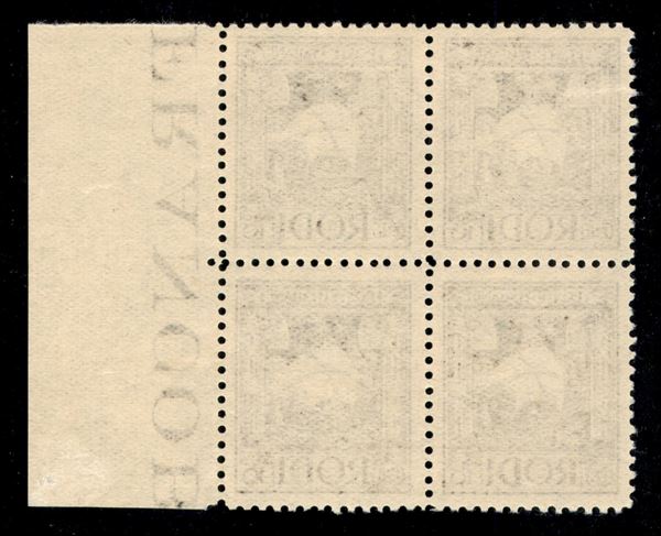 1929 - 10 cent Pittorica (4) con Ritocco (4a) in alto a destra - quartina bordo foglio - gomma integra