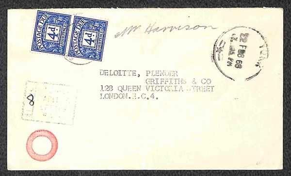 1934/1966 - Tre buste e una cartolina tassate in arrivo