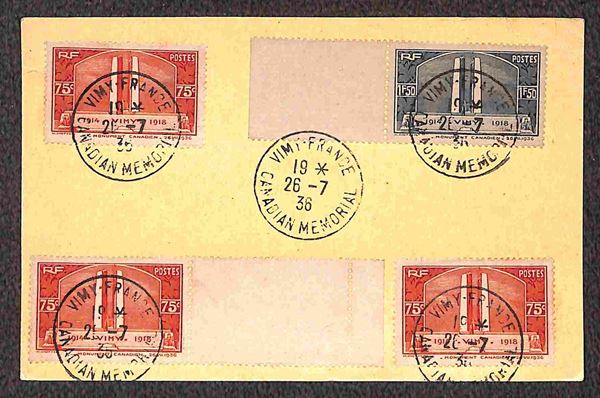 1936 - Tre cartoline con affrancature del periodo e annulli speciali