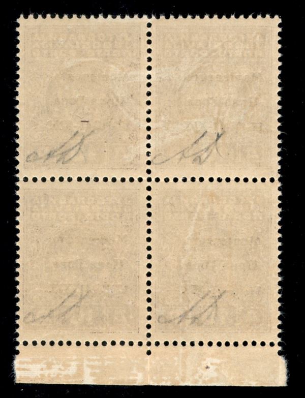 1941 - 10 din (5) in quartina - tre pezzi con errori (gb+ga+gb) + macchia su XIX (in basso a sinistra - non catalogato ) - gomma integra - Diena + Chiavarello