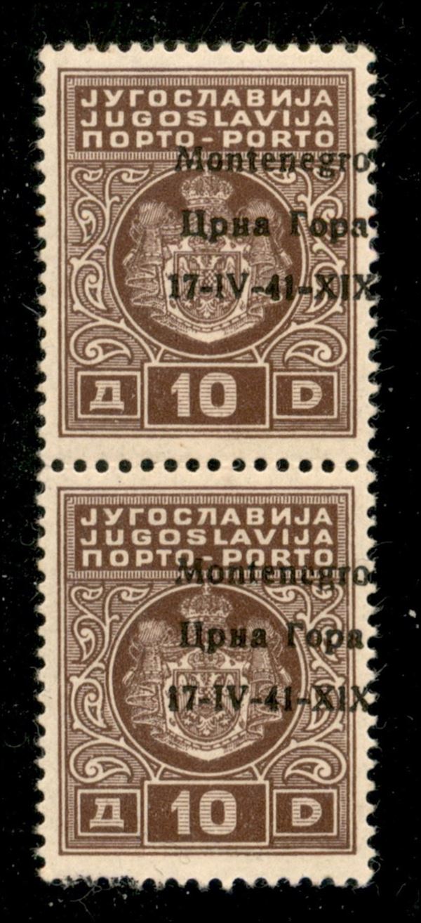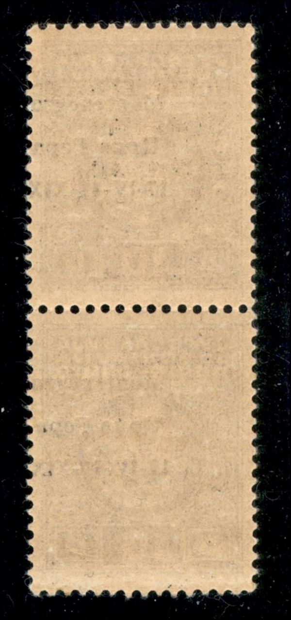1941 - Segnatasse - 10 din (5 varietà) con soprastampe a destra - coppia verticale con errori 1V (in alto - non catalogato) + X1X (5gb - in basso) - gomma integra