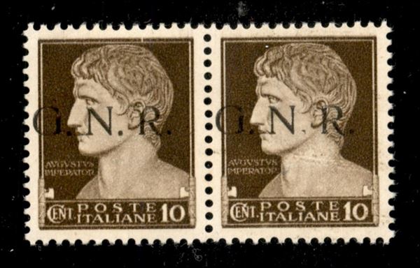 1943 - 10 cent (471/I) in coppia (pos. 168/169) - R + punto dopo N scalpellati - gomma integra