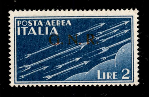 1943 - 2 lire Aerea (122/I) con soprastampa del I tipo - gomma originale con invisibile traccia di linguella