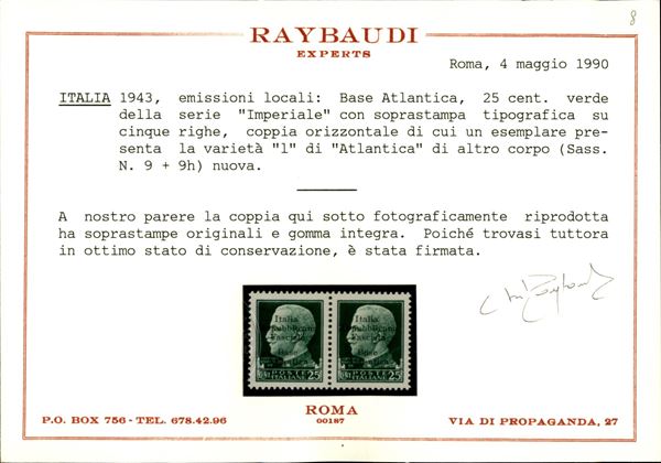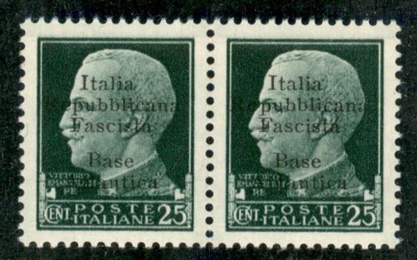 1943 - Coppia del 25 cent (9+9h) con l di corpo diverso - gomma integra - cert Raybaudi