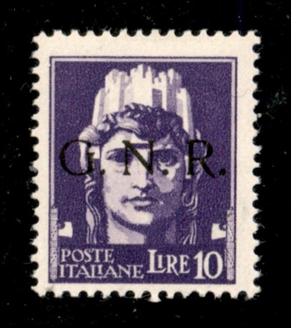 1944 - 10 lire (486iab) con punto piccolo dopo G - non catalogato - gomma con traccia di linguella - molto bello