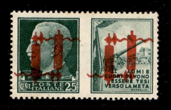 1944 - 25 cent Esercito (50Ab) con doppia soprastampa di cui una capovolta - gomma integra con qualche ingiallimento - Andreoni