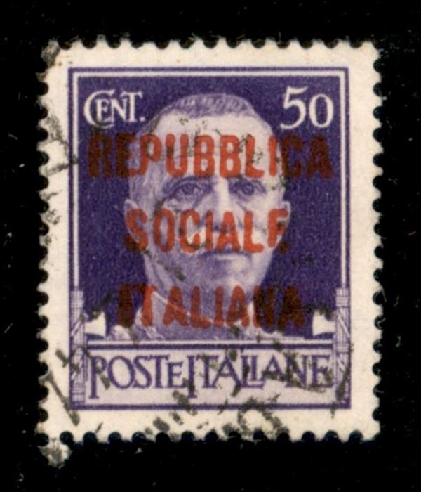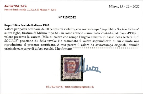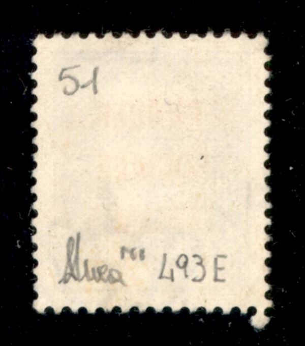 1944 - 50 cent rosso arancio (493E) - tiratura di Milano (posiz. 51) - cert. Andreoni