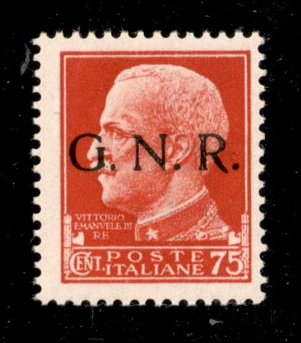 1944 - 75 cent (478iab + l) con punto piccolo dopo G e decalco (leggermente spostato) - gomma integra - non catalogato - cert. AG