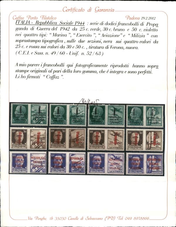 1944 - Propaganda di Guerra (49/60) - tiratura di Verona - serie completa - gomma integra - cert. Caffaz