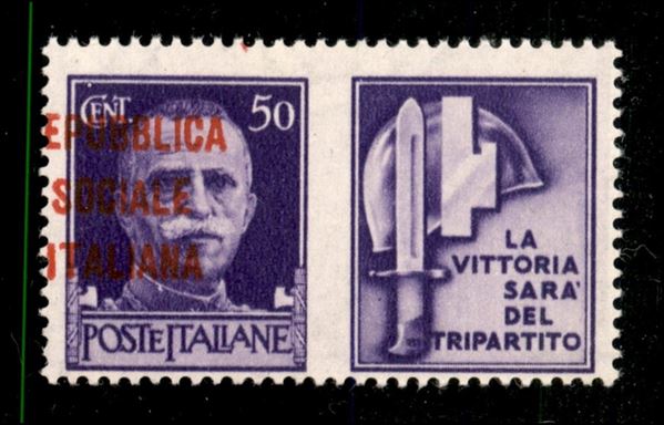 1944 - Provvisori - 50 cent Milizia (36 varietà) con soprastampa spostata (senza R) - ultimo della fila) - gomma integra - non catalogato