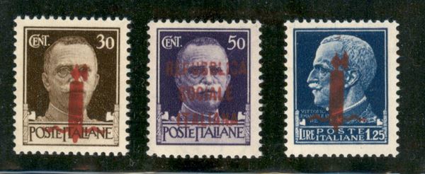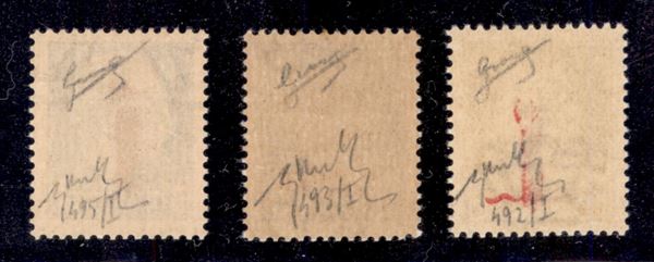1944 - Soprastampati carminio lillaceo (492/I + 493/I + 495/I) - tiratura di Firenze - 3 valori - gomma integra - Chiavarello + Biondi