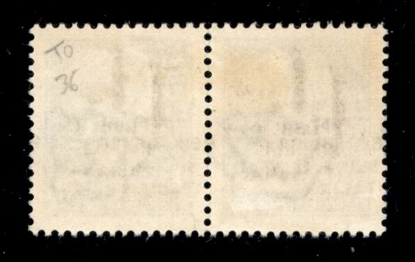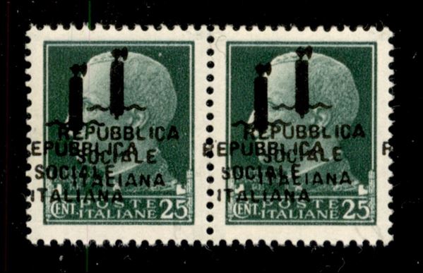 1944 - Torino - 25 cent (491b) - coppia orizzontale (pos. 35/36) con doppia soprastampa (una a cavallo) - gomma originale