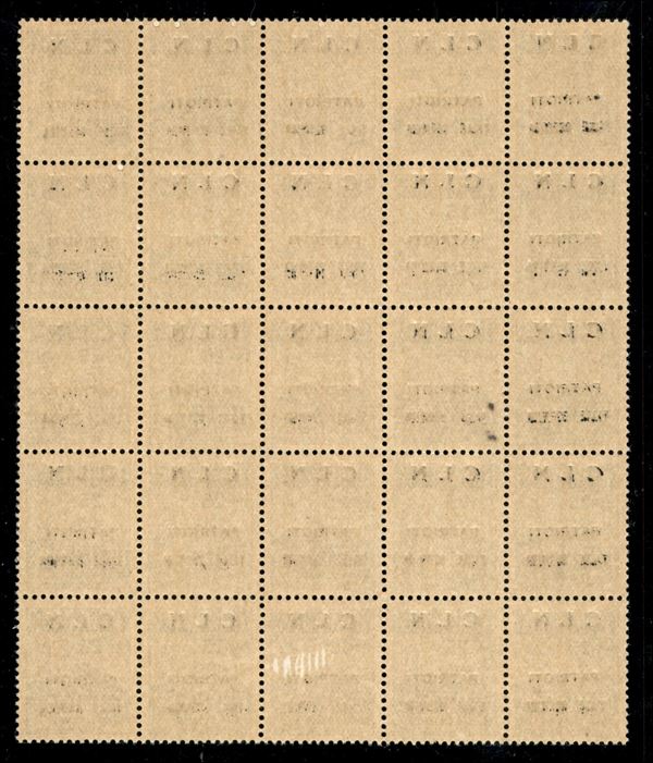 1945 - 25 cent (3) - blocco di 25 (mezzo foglio) - spaziature verticali tra le soprastampe dei valori tutte diverse - non catalogato