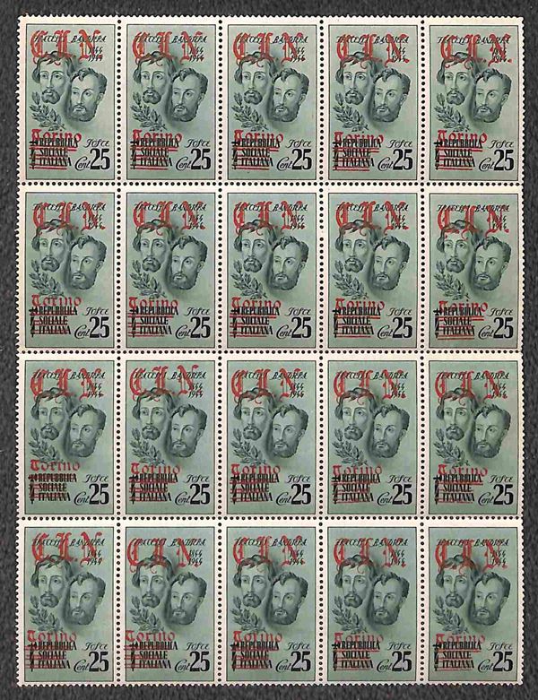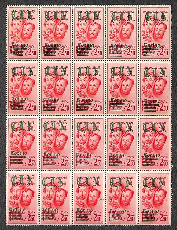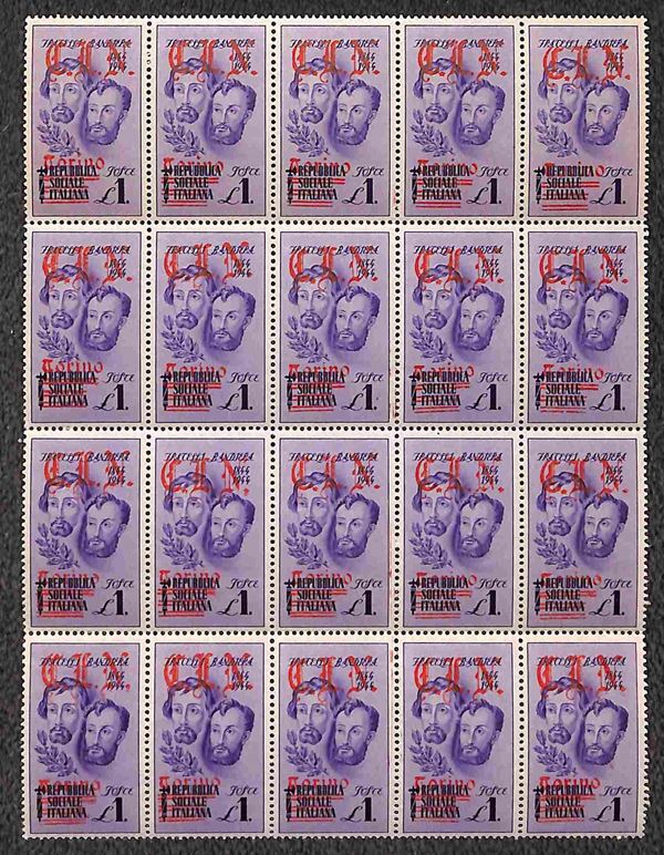 1945 - Fratelli Bandiera (Unif. 14e + 15e + 16f + 16g) con soprastampe nel colore non adatto - gomma integra