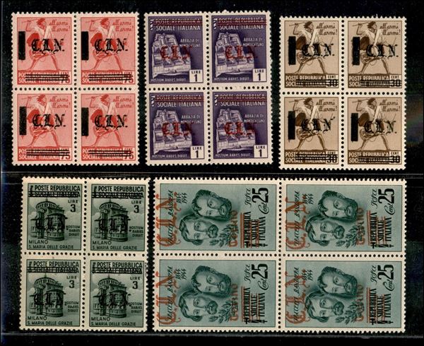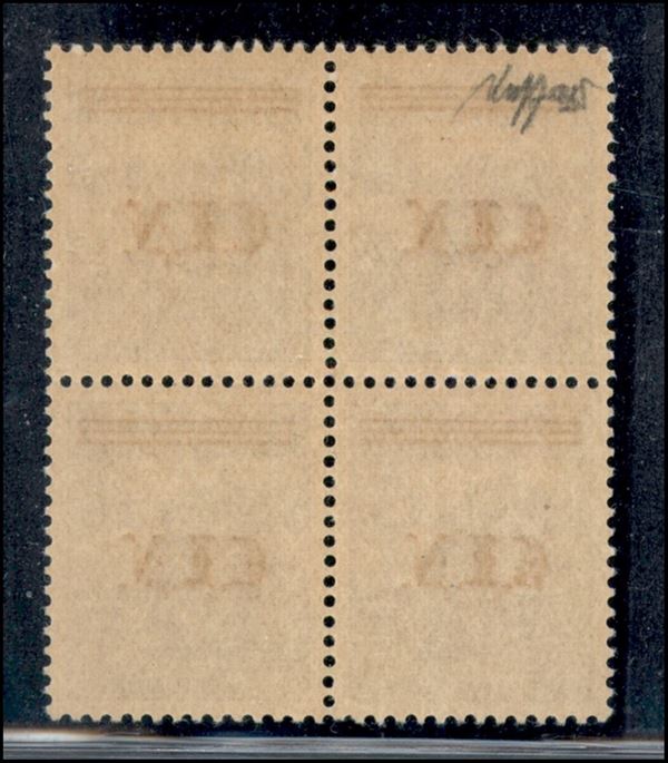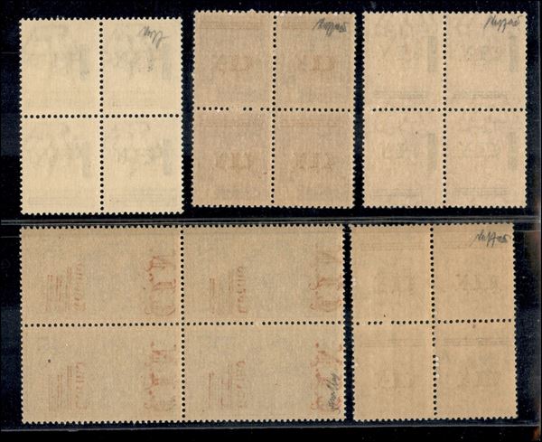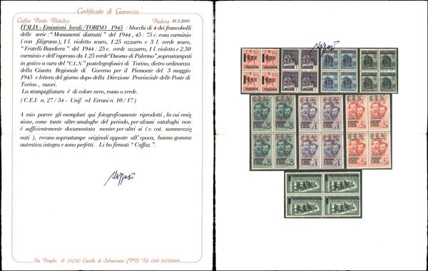 1945 - Monumenti Distrutti + Bandiera (10/17) - 9 valori in quartine - gomma integra - cert Caffaz