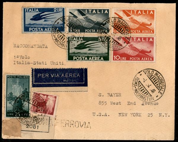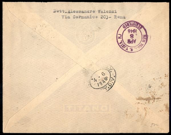 1946 (4 aprile) - Roma Washington - aerogramma raccomandato con il 3,20 lire usato in periodo di validità - non comune