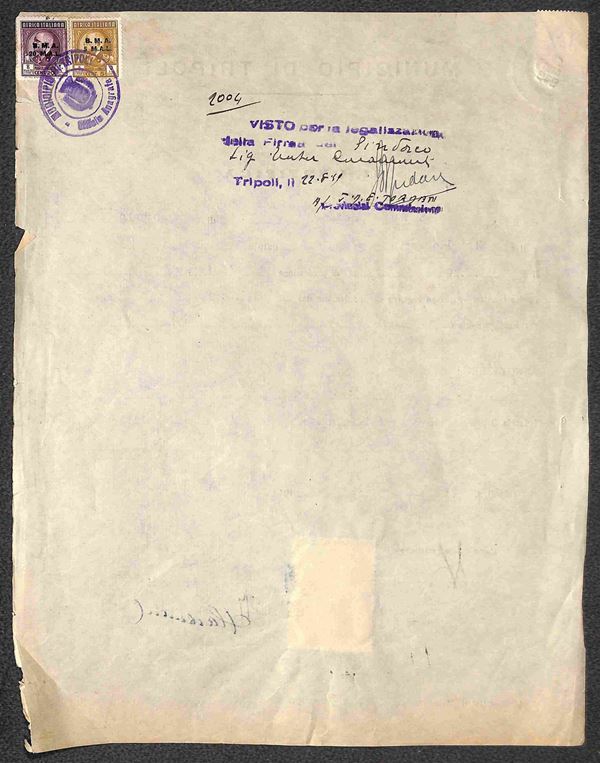1949 (22 agosto) - Tripoli - Certificato anagrafico - con marche da bollo G.M.A.