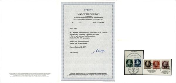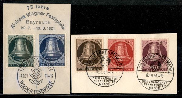 1951 - Campana (82/86) - serie completa usata su 2 frammenti con annullamenti speciali - cert. Schlegel