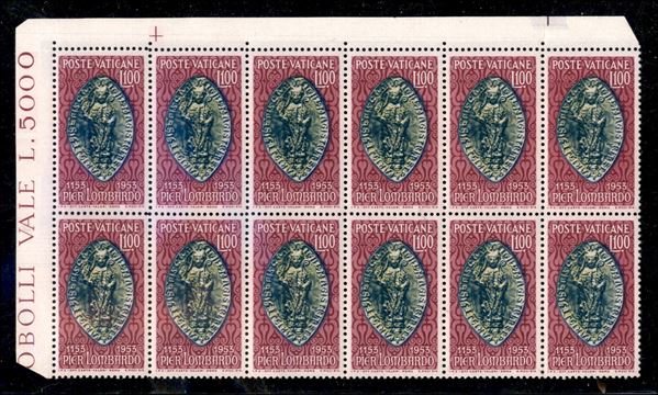 1953 - 100 lire Pier Lombardo (173) - blocco angolare di 12 - gomma integra