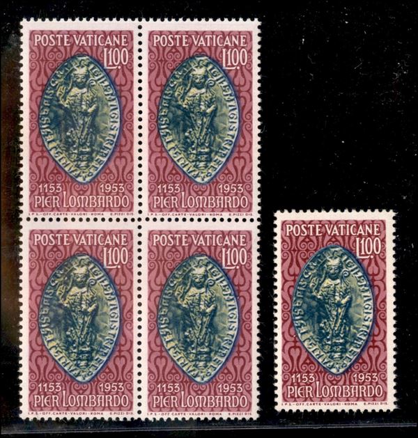 1953 - 100 lire Pier Lombardo (173) - quartina + singolo - gomma integra