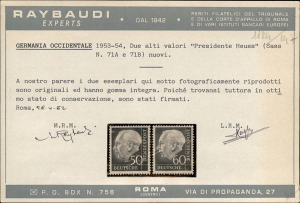1954 - Presidente Heuss (177/196) - serie completa - gomma integra - 50 + 60 pfenning Cert. Raybaudi