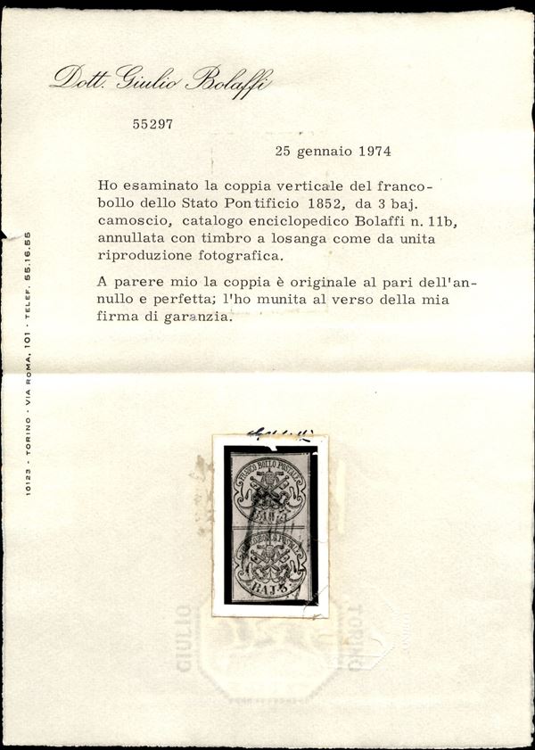 3 bai camoscio (4c) - coppia verticale usata - cert. G. Bolaffi