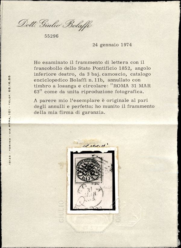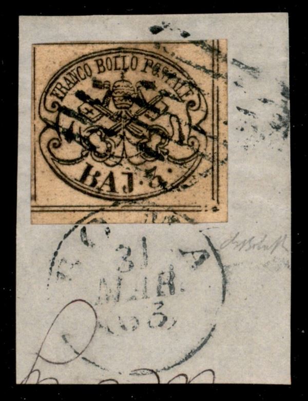 3 bai camoscio (4c) usato su frammento - cert. G. Bolaffi