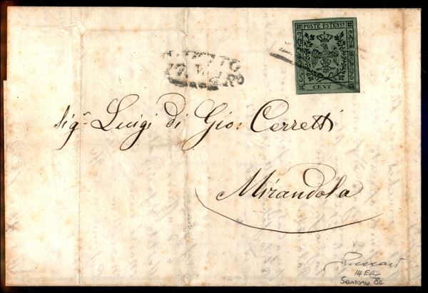 5 cent (8c) con punto spostato su 5 + rottura del clichè diagonale al centro - isolato su circolare da Reggio a Mirandola del 17.3.57 - piega orizzontale (non grave) in alto - raro insieme - P. Vaccari