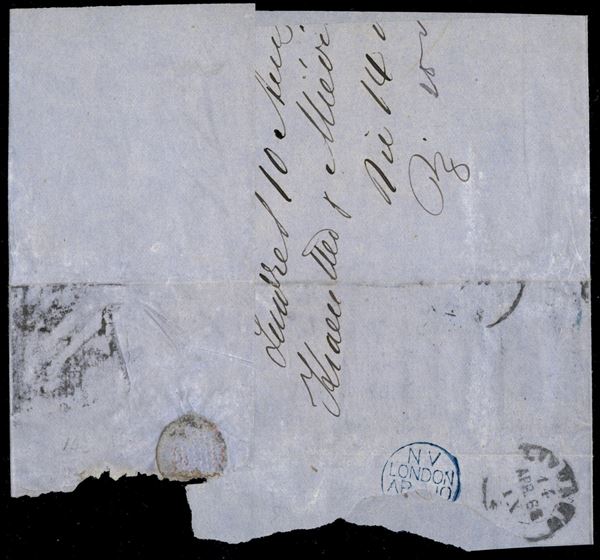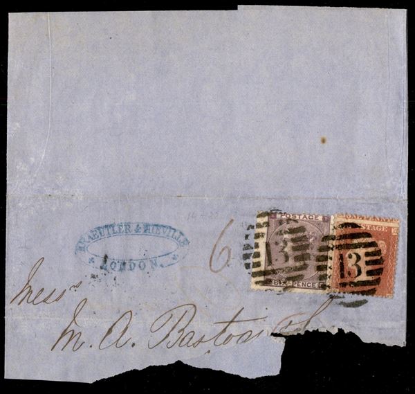 6 pence (20) + 1 penny (16) con "one penny" in alto - testatina di lettera da Londra a Livorno del 10.4.63