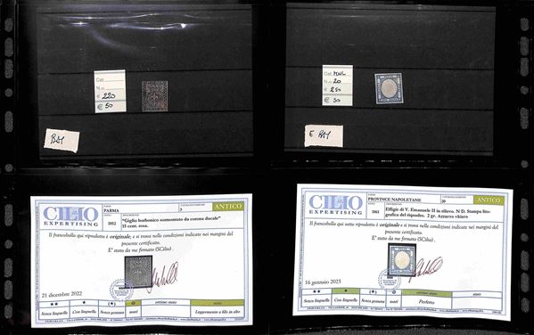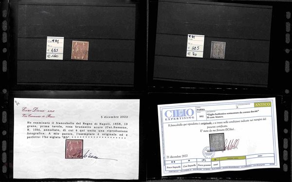 AREA ITALIANA - 1852/1924 - Lotto con insieme misto di Antichi Stati come Parma Napoli Toscana Sicilia e Regno d'Italia primo periodo pił qualche servizio con alcune interessanti presenze - merita esame
