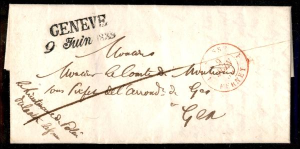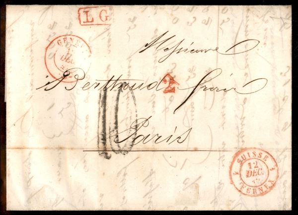 Basel su lettera per Parigi del 24.3.1807 + Canton de Geneve/Police al retro di letterina per Gen del 9.6.1939 + Geneve su lettera per Parigi del 12.12.1842