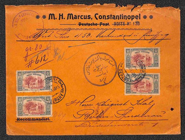 Brasṣ K.U.K. Militarbriefze.... - Quattro 1 piastra e 3/4 (237) - assicurata da Costantinopoli a Berlino del 10.10.15