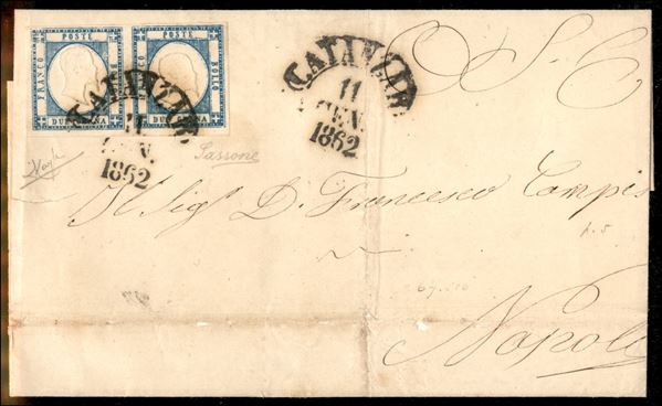 Catanzaro - coppia del 2 grana (20) su lettera per Napoli del 11.1.1862 - Raybaudi