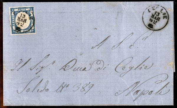 Ceglie - 2 grana (20) su lettera per Napoli del 13.3.1862 - leggera piega orizzontale in alto