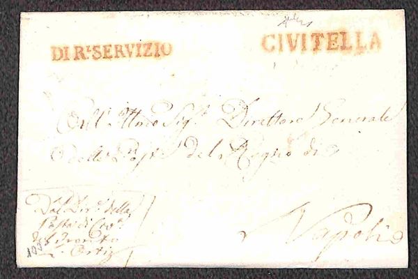 Civitella + Di R. Servizio (entrambi in rosso) - intera lettera per Napoli del 24.7.1820 - Chiavarello