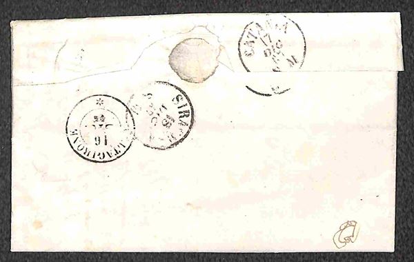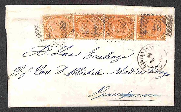 De La Rue + Torino - 10 cent (17) - singolo (Torino) + striscia di tre (De La Rue) su lettera da Caltanisetta a Spaccaforno del 14.12.67