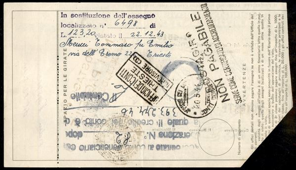 Fascio (nero) - soprastampa (a mano) su Assegno di Conto Corrente Postale da Trieste del 20.5.44