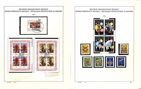 GERMANIA DDR - 1970/1979 - Collezione molto avanzata dei valori usati emessi nel periodo in album e fogli Schaubek - notato qualche valore nuovo (oltre 350)